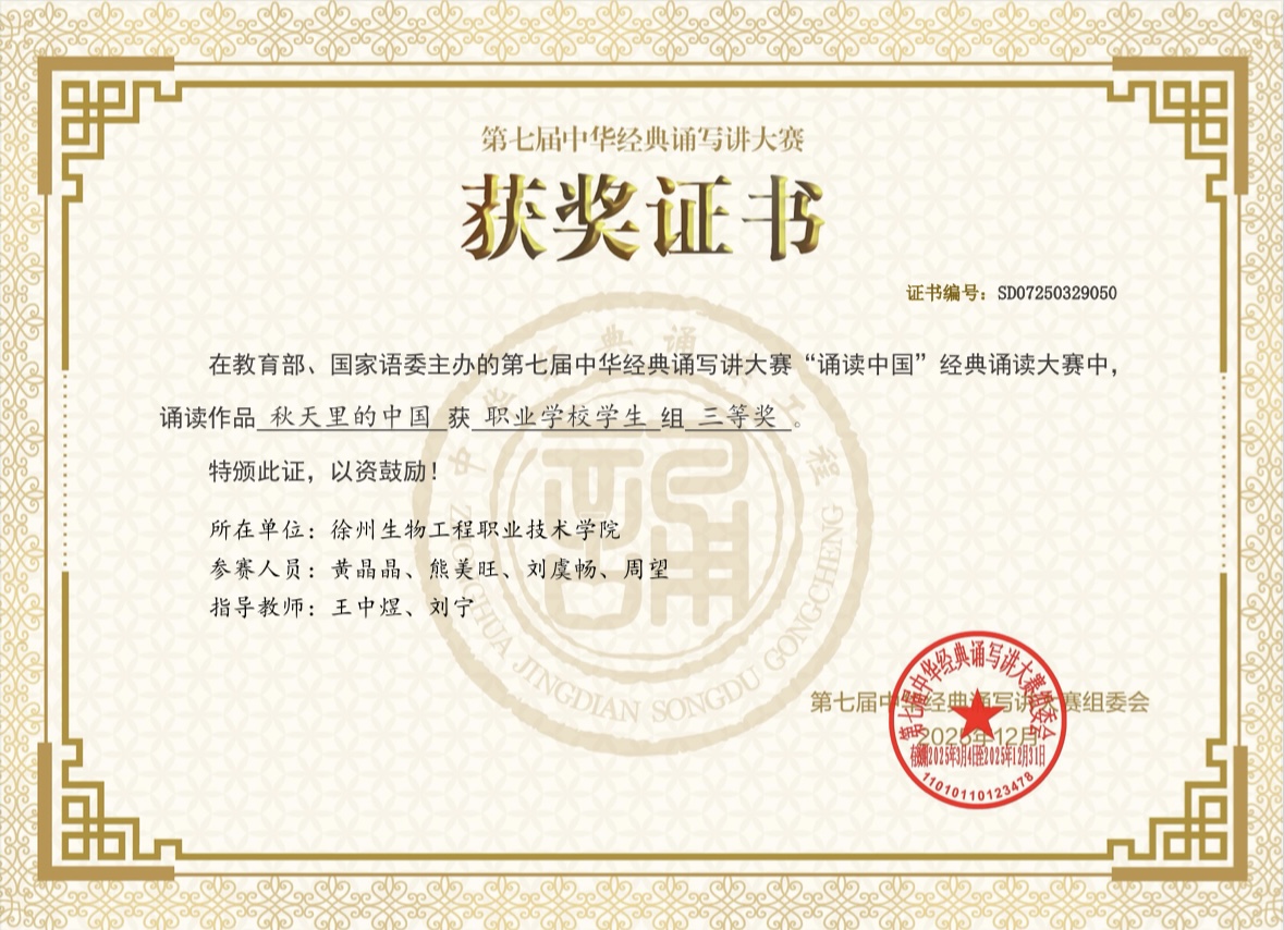 中华经典诵写讲大赛是教育部、国家语委推动中华优秀语言文化传承发展的品牌赛事,第七届大赛以“典耀中华,赓续文脉”为主题,首次开辟港澳台赛道并进一步扩大海外赛道的辐射范围,共吸引超2000万人次参与。我校参赛师生团队以精益求精的态度深耕经典文本,在反复打磨中体悟经典精髓,在声情演绎中传递文化力量,最终凭借扎实的专业功底与极具感染力的舞台呈现,成功站上国家级领奖台,展现了职业院校师生的文化素养与精神风貌。